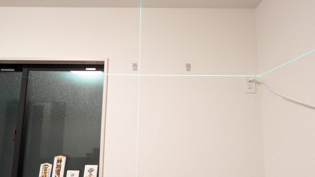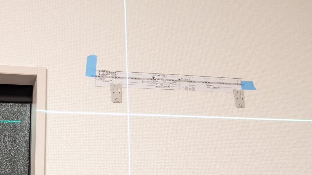 ガイドの用紙が説明書と一緒になっているので、取り付けたい場所にマスキングテープで固定して場所を仮決めしておきます。